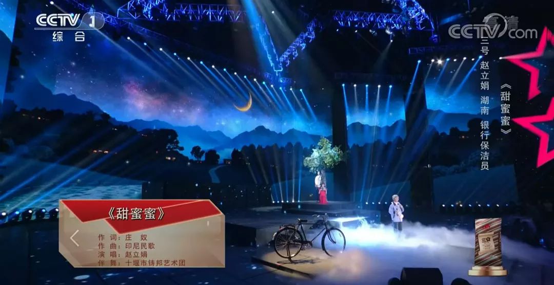 “甜蜜蜜,你笑得甜蜜蜜,好像花儿开在春风里……”5月31日晚,央视《星光大道》新一轮周赛播出。在农行深圳龙华支行上班的保洁阿姨赵立娟,以一首《甜蜜蜜》开始表演收获了阵阵掌声并一举夺得节目周冠军在,全国亿万观众面前绽放自己的光彩!谁能想到,有如少女般甜美的天籁之声竟是从50多岁的保洁阿姨口中唱出来,自湖南常德的她,很早就离开家乡来到深圳打工服务员、保姆、酒店员工……生活坎坷艰辛,但并未磨灭她的歌唱梦想。歌声带给她最好的慰藉和力量,每当音乐响起,她就成为舞台上最耀眼的那颗星!