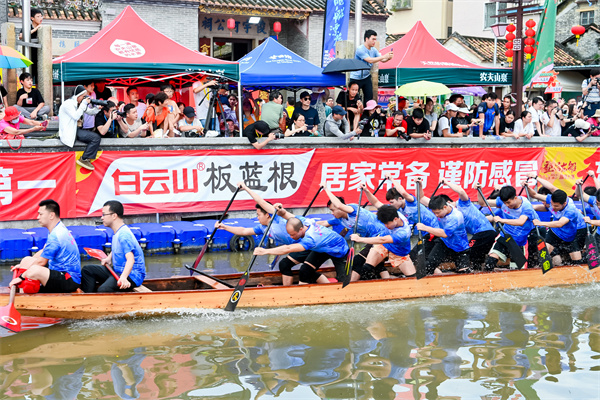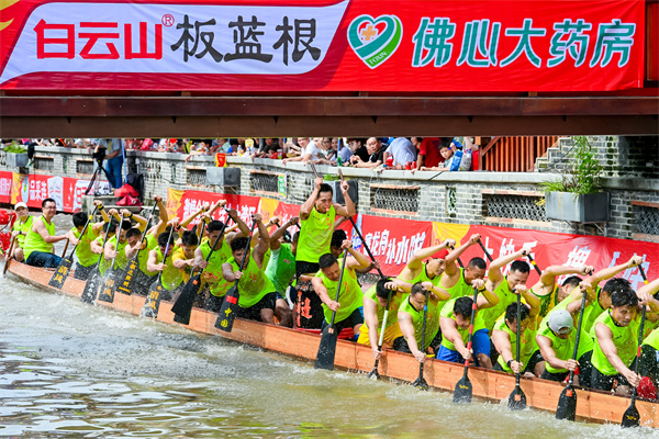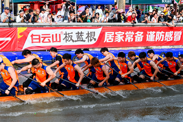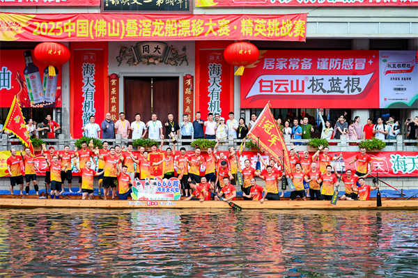 赛事期间,各支队伍“直道冲刺如箭、急弯漂移似龙”的绝技,被媒体镜头收录为端午文化符号。现场观众直呼:“25米龙船在5米宽河道甩尾漂移,比赛车还刺激!”6月16日下午,由白云山板蓝根特别赞助的广州市荔湾区海中联队以2分05秒57的成绩勇夺潭头(C弯)挑战赛冠军。随着精英挑战赛鼓声渐歇,2025中国(佛山)叠滘龙船漂移大赛圆满收官。这场持续两个月的文旅盛宴,将惊险刺激的“水上漂移”竞技与千年民俗完美融合,更以“龙根”为文化纽带,让中医药智慧与龙舟精神碰撞出耀目火花,点燃了一座城的热情!